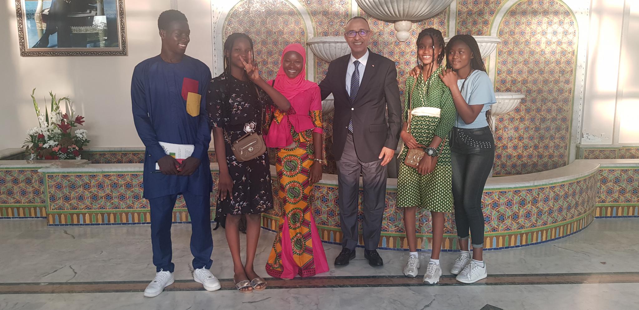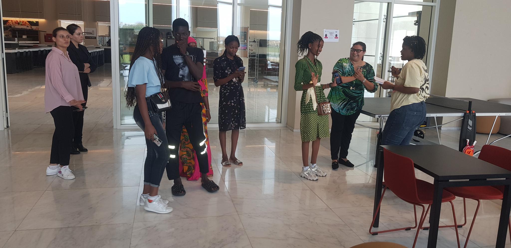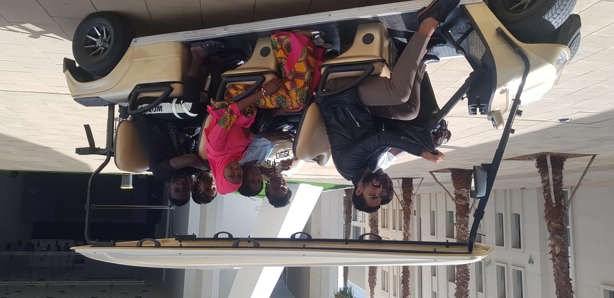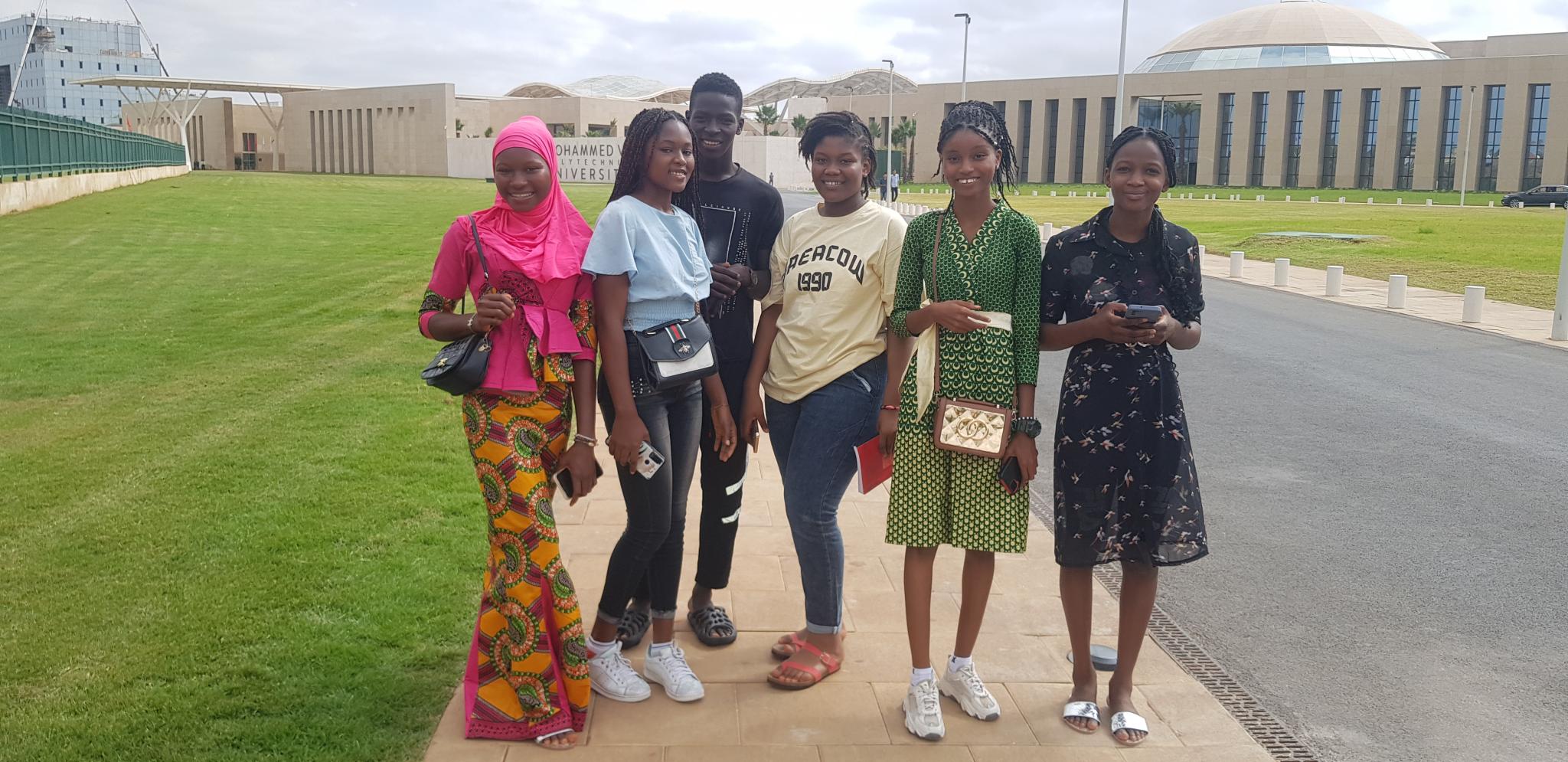 Nous sommes arrivés précisément à l’Université Roi Mohamed VI à 10h30. Un lieu dont la rentrée n’est pas autorisée qu’aux hôte. Il nous a fallu présenter nos passeports pour y entrer car c’est une université appartenant au prince héritier. Elle se trouve dans un conglomérat d’université. Eblouis par la grandeur de la construction, nous avons été accueillis chaleureusement par de charmantes jeunes dames dont :